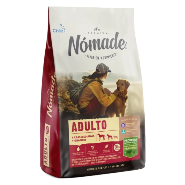 La selección de un alimento adecuado para tu mascota es muy importante para garantizar su crecimiento, desarrollo y salud. Con esta opción de Nómade podrás cubrir las necesidades nutricionales y energéticas de tu perro. Tu mascota siempre saludable Ellos son parte de la familia y nos regalan su compañía y su cariño. Para que se mantengan sanos y fuertes, una alimentación balanceada es esencial. Bríndale a tu perro los nutrientes que necesita para que pueda correr, saltar y jugar todo el día.