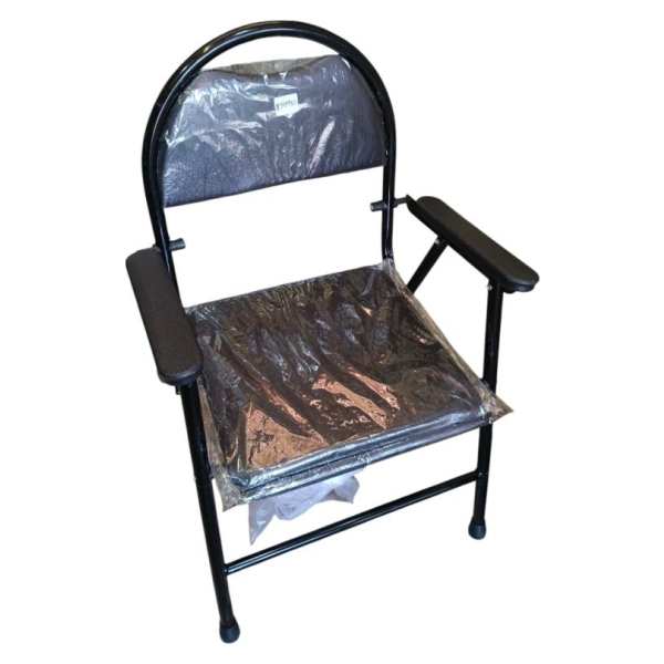 Silla sanitaria multifuncional diseñada para brindar comodidad y accesibilidad. Su estructura metálica plegable permite usarla como: